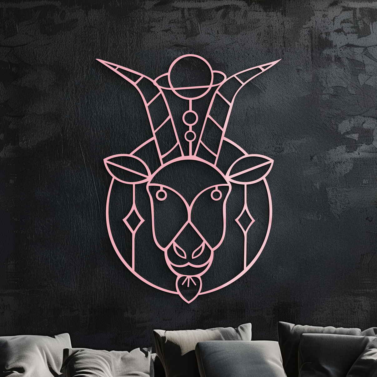 Add a touch of astrology to your home with this Capricorn Zodiac metal wall art, designed in a modern geometric style. Produced exclusively in pink color, this durable metal piece makes a bold statement while celebrating your zodiac sign. A unique and meaningful gift idea for Capricorn lovers and astrology enthusiasts.