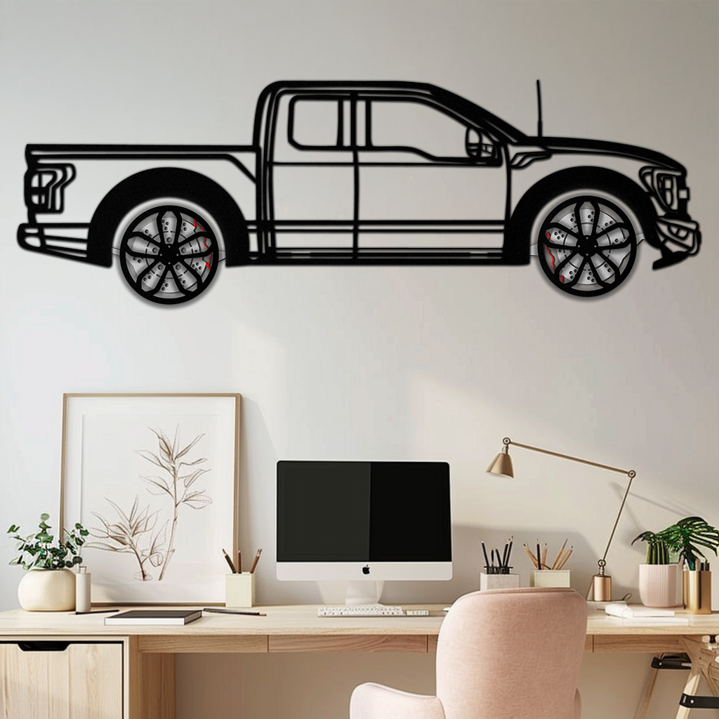 Feel the power and rugged elegance of the legendary Ford F-150 Raptor right in your living space. This is not just a piece of decor; it’s an interactive masterpiece. Featuring manually rotating wheels, this laser-cut metal art allows you to interact with your passion in a way no other wall decor can.