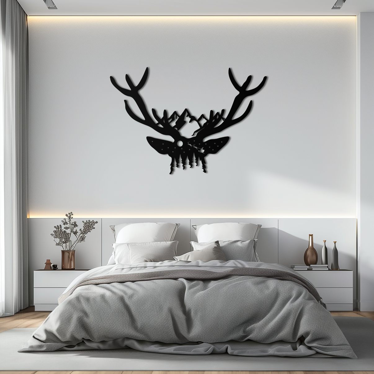 ✔ Unique Nature-Inspired Design – Combines a deer skull, mountains, and forest into a striking silhouette.