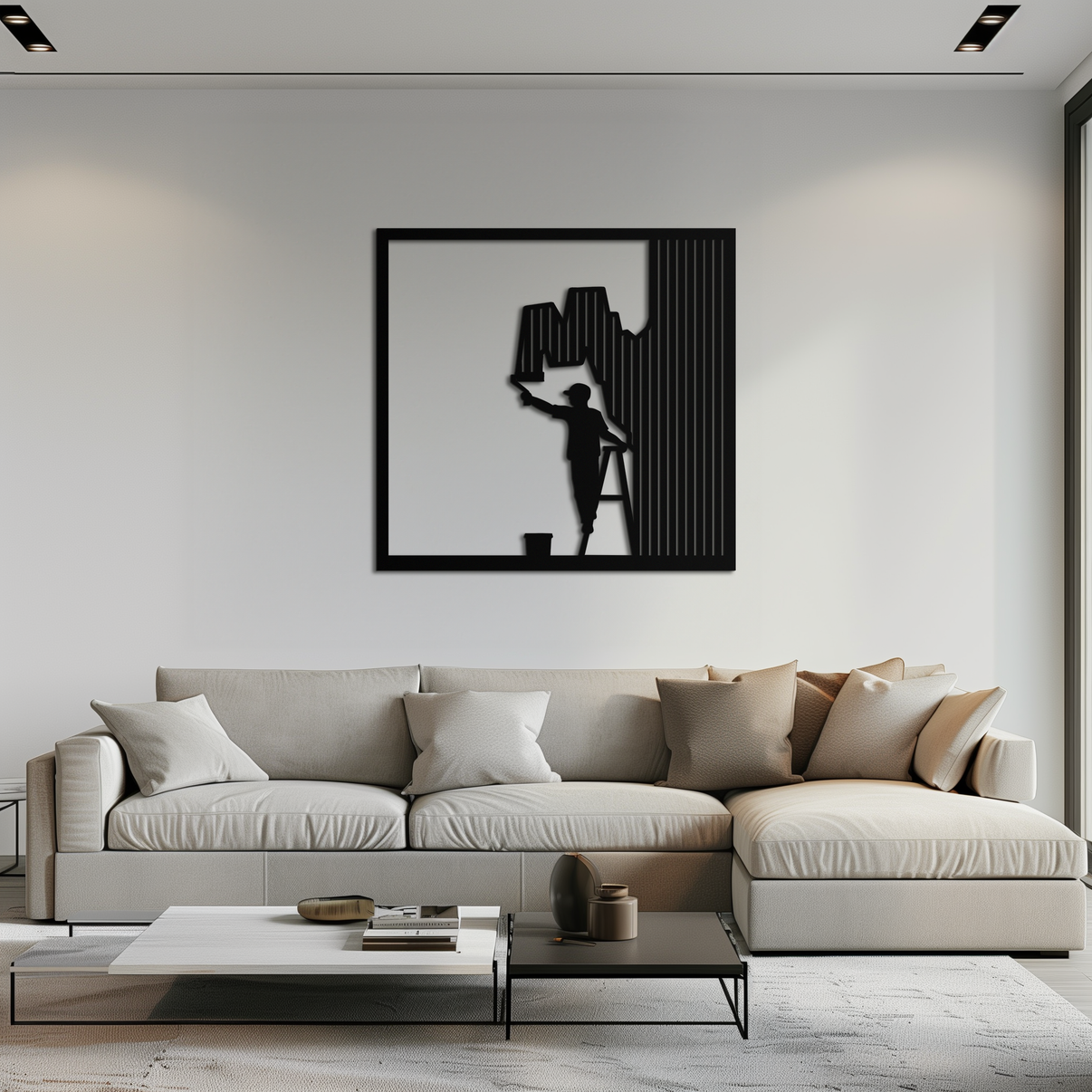 Celebrate creativity and craftsmanship with our Painter Silhouette Metal Wall Art. Featuring the dynamic image of a painter working in front of an industrial backdrop, this piece brings artistic energy and inspiration to any space. Crafted from premium 1.5mm steel and finished with a durable matte black electrostatic powder coating, it offers both lasting beauty and motivational charm.