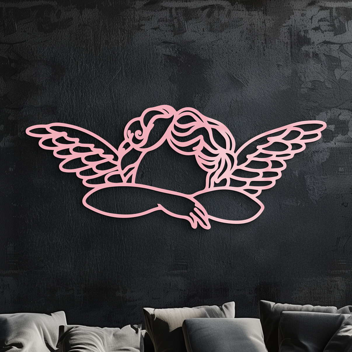 Bring serenity and grace to your home with this Pink Angel Silhouette Metal Wall Art. Featuring a peaceful angel figure with beautifully detailed wings, this design symbolizes protection, hope, and tranquility. Crafted from high-quality metal and coated in a vibrant pink powder finish, it adds a soft yet meaningful accent to any living room, bedroom, or spiritual space.