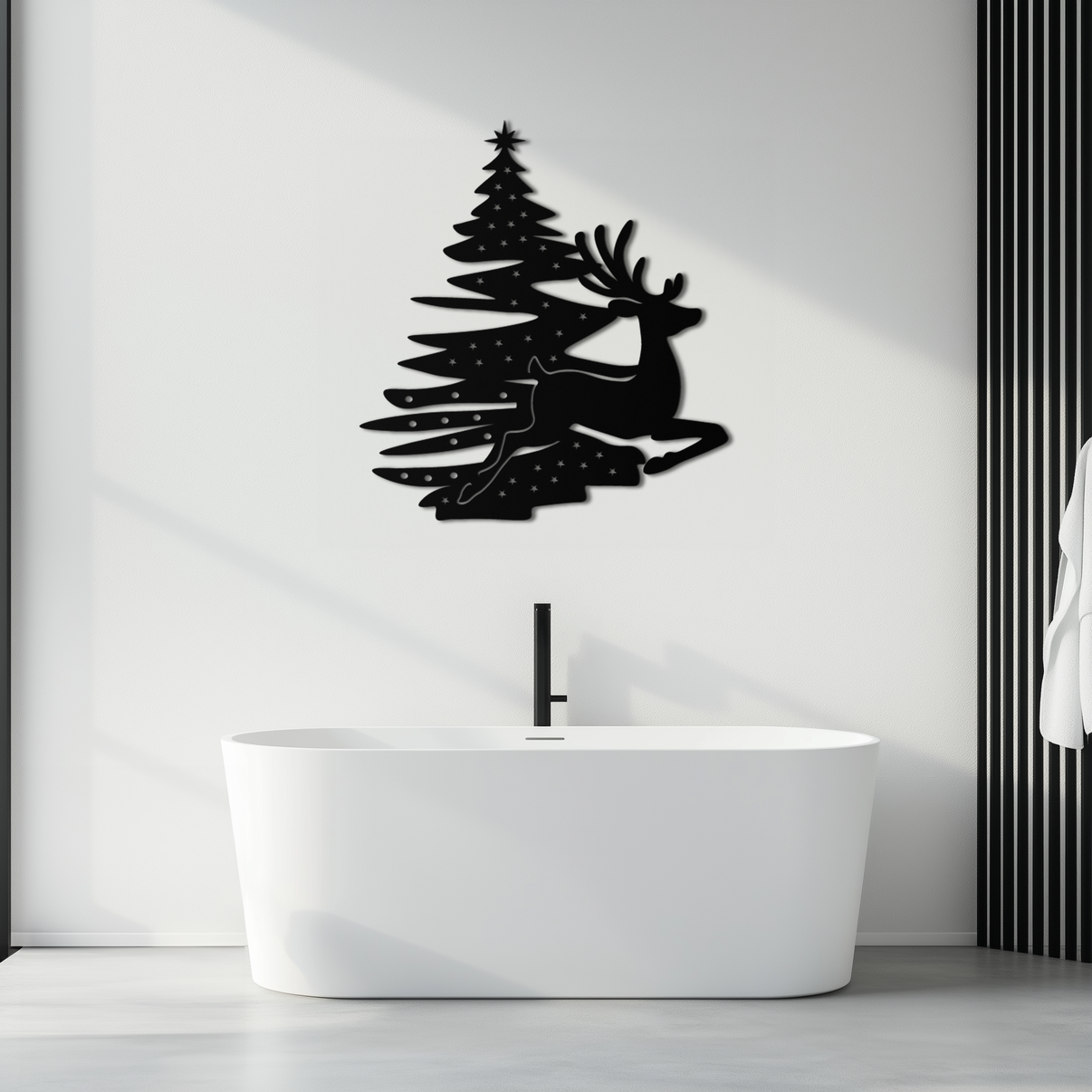 Celebrate the magic of the holidays with this Reindeer and Christmas Tree Metal Wall Art. Featuring a leaping reindeer in front of a beautifully stylized Christmas tree with star and snow accents, this elegant piece brings festive charm to your space. Perfect for seasonal decoration or as a thoughtful gift during the winter months.