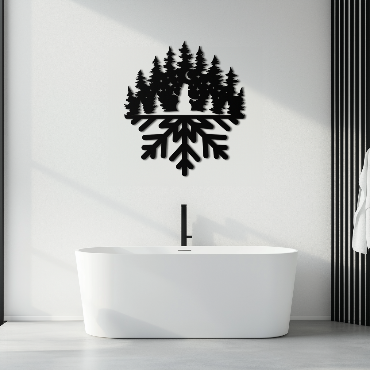 Celebrate the serene beauty of winter with this Snowflake Forest Metal Wall Art. Featuring a magical tree silhouette above a bold snowflake shape, this design perfectly blends the calm of a snowy forest with geometric elegance. Ideal for those who love winter, nature, and meaningful wall art.