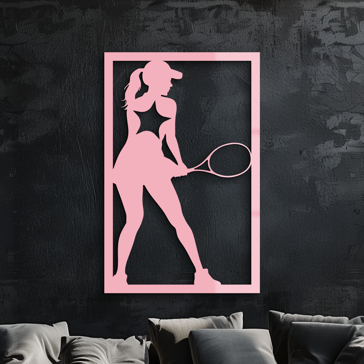 Bring the energy of the court to your home with this Tennis Player Silhouette Metal Wall Art. Designed in striking pink metal, this artwork captures the elegance and strength of a female tennis player mid-game. Perfect for sports enthusiasts, modern décor lovers, or as a unique gift, it adds a bold and stylish statement to any space. Made from premium quality metal with precise laser cutting and durable powder coating.
